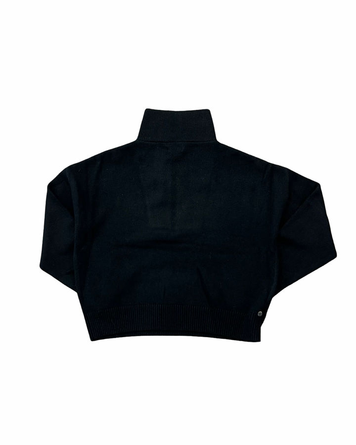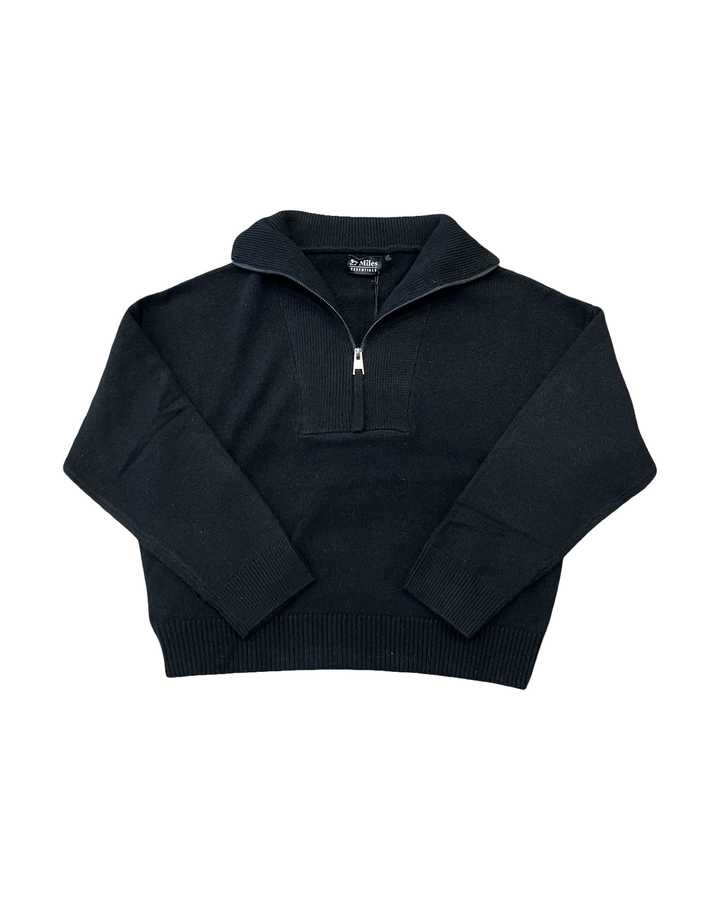 Experience cozy sophistication with the Jeanette Half-Zip Cashmere Sweater in black. Crafted from luxurious cashmere, this women's half-zip sweater offers exceptional softness and warmth. Its sleek design and versatile color make it perfect for layering or wearing alone, elevating your look effortlessly while keeping you comfortable throughout the day.