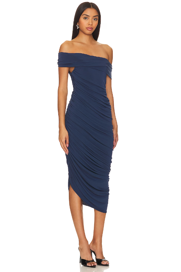 Alana Ruched Midi Off Shoulder Dress