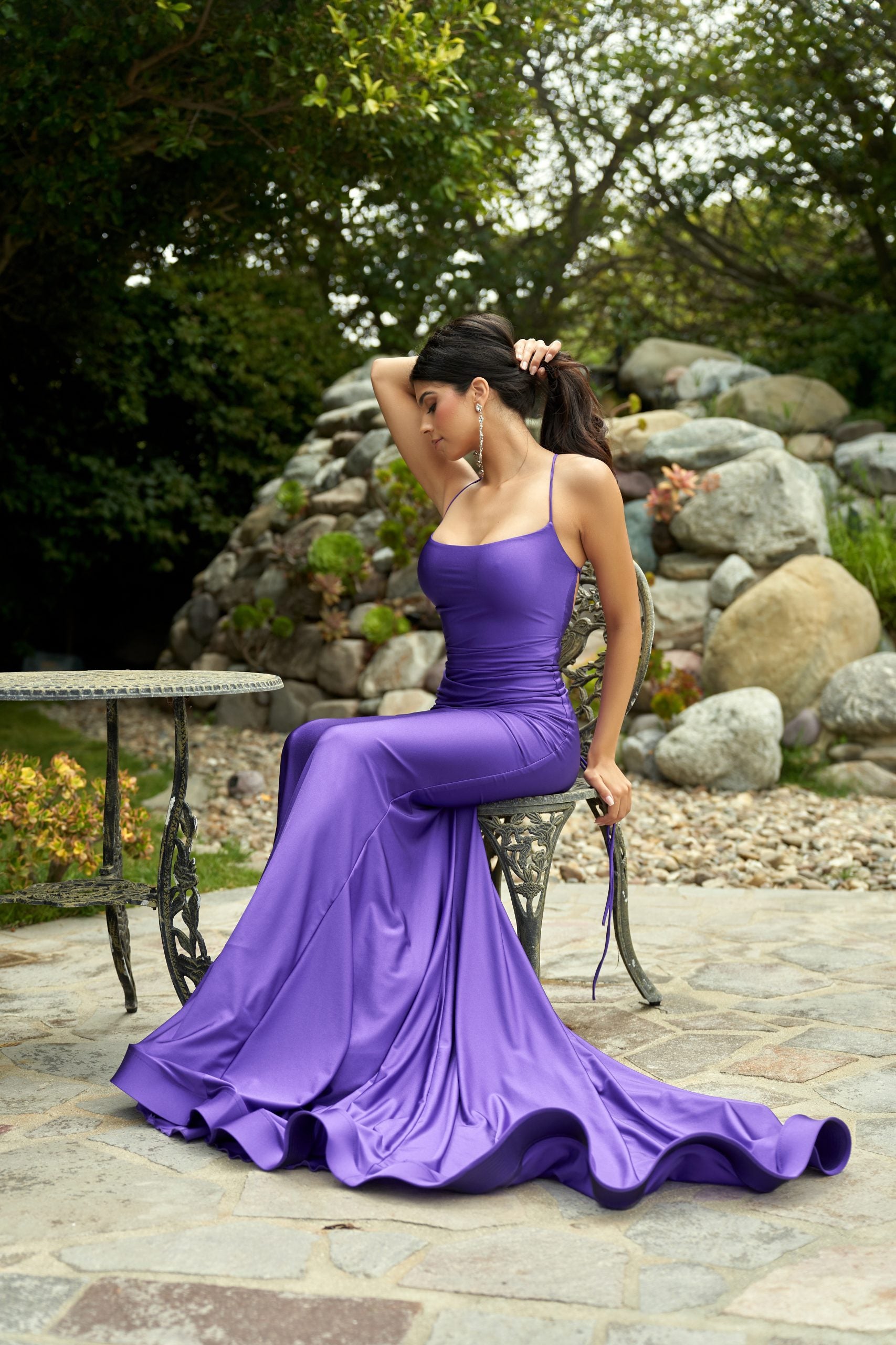 A minor scoop-neckline with a tie back and a rushed backside!