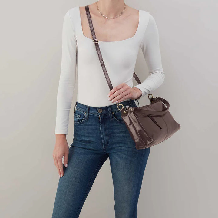 This shoulder bag has a convenient crossbody strap option and plenty of room for your belongings.