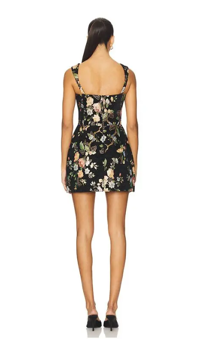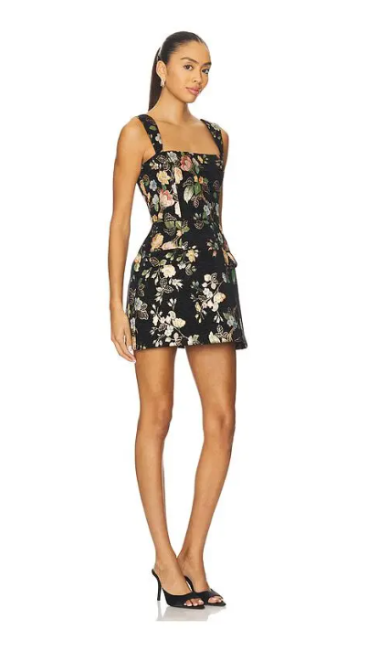 The Amanda Uprichard Bethany Romper features Jacquard textile, fixed straps and front faux flap pockets. It is fully lined and has a hidden back zipper with hook and eye closure.