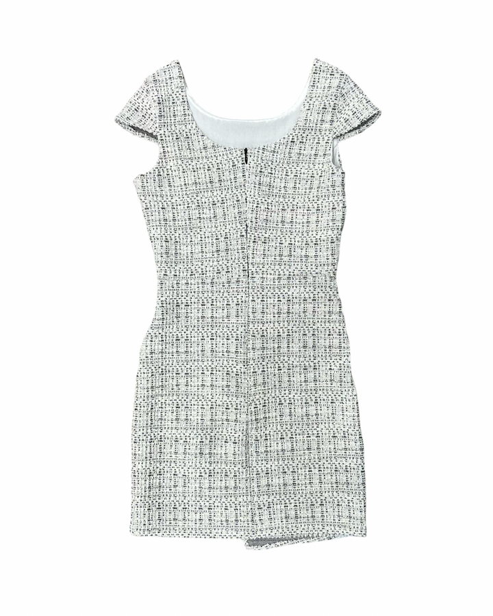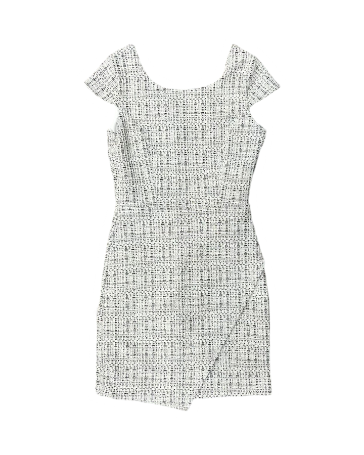By Debra girls and preteen black and white textured cap sleeve envelope dress.