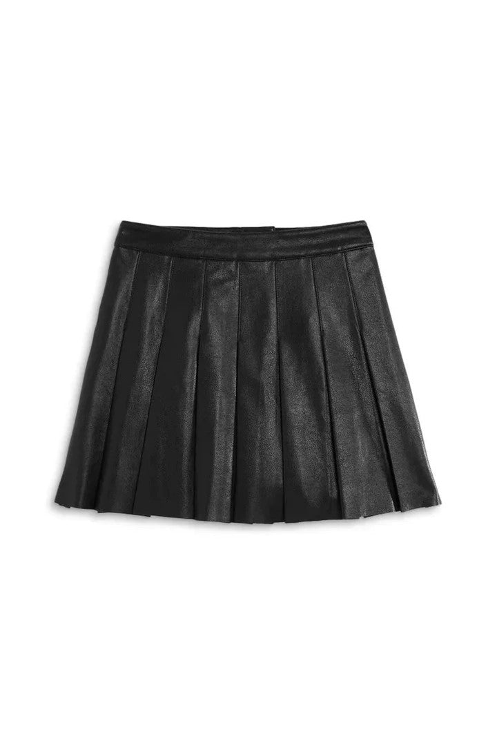 Katie J faux leather pleated Eddie skirt available in kids and juniors! Juniors will fit like adult sizes.