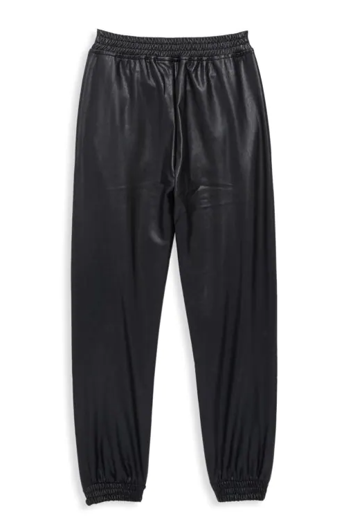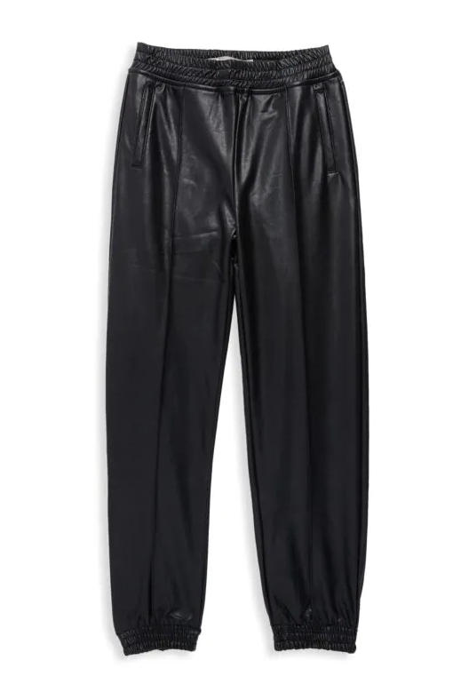 Girls Black faux leather jogger pants