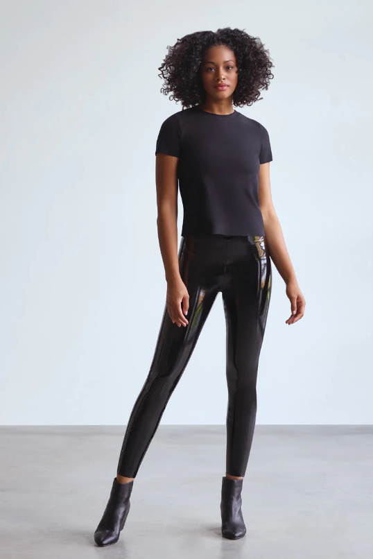 These high-shine leggings are made from a four-way stretch patent with great recovery. Constructed with commando's signature smoothing internal waistband and a flattering high-rise, these patent leggings are a show stopper.