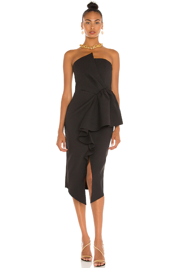 Curves and angles play in a pretty way on this strapless cocktail dress that's sure to inspire spirited toasts and dance-floor invites.