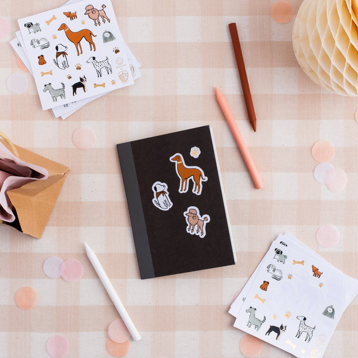 It's pawty time! Featuring a warm neutral color palette and gold foil elements, these puppy dog stickers are definitely best in show!