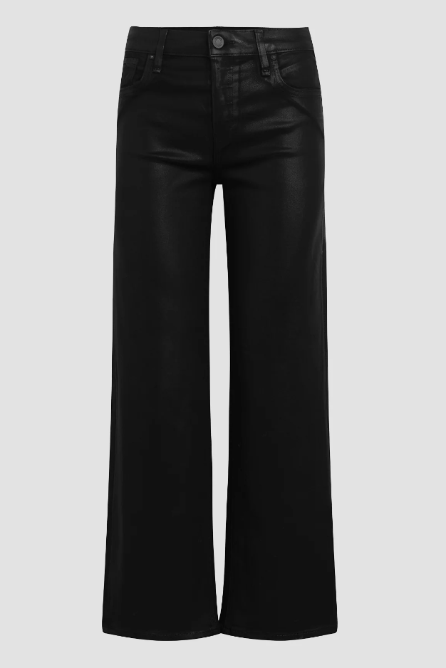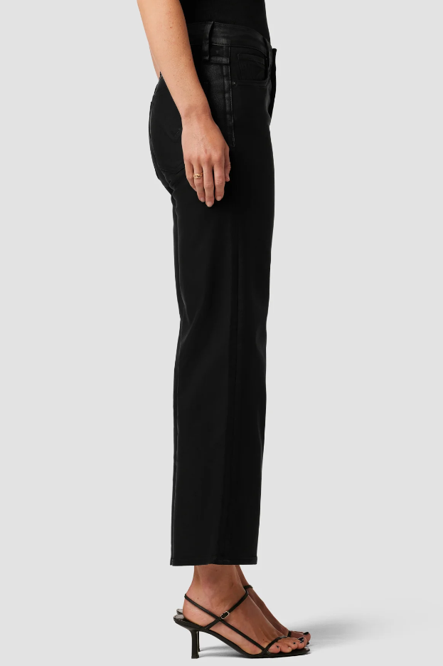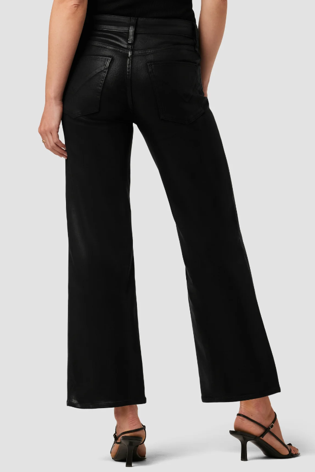 Re-up with Hudson's Rosie High-Rise Wide Leg Ankle Jean, cut with an elevated waistline and ’70s-feel roomy leg from premium coated denim. The Coated Black wash is cropped with a clean hem and overdyed to perfection.