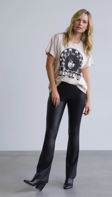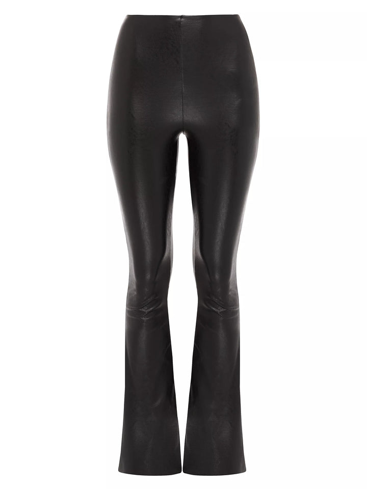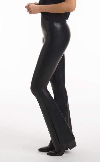 This flared faux leather legging is made from a smoothing fabric with four-way stretch. Featuring the signature internal waistband and a flattering high rise, these pull on flares add just the right amount of rock and roll and be can be styled so many ways.