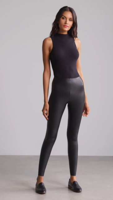 Faux leather leggings featuring commando's signature internal waistband & firming, smoothing fabric that doesn't bag or sag. These faux leather leggings are seriously smoothing and provide all-day comfort you can style from day to night.