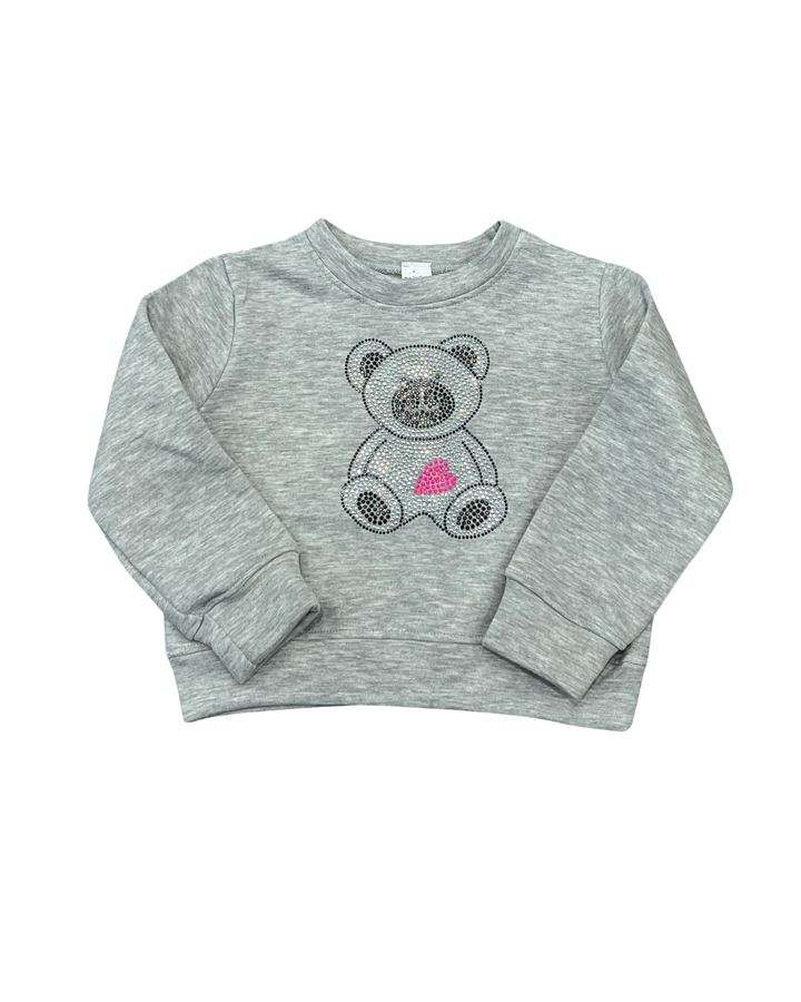 This Girls Bear Sweatshirt from Dori Creations features a soft heather grey background adorned with a charming silver and pink bear design. Crafted for cozy comfort, it’s perfect for keeping your little one warm while adding a touch of playful style to her wardrobe. Ideal for everyday wear, this sweatshirt blends warmth and cute aesthetics effortlessly.