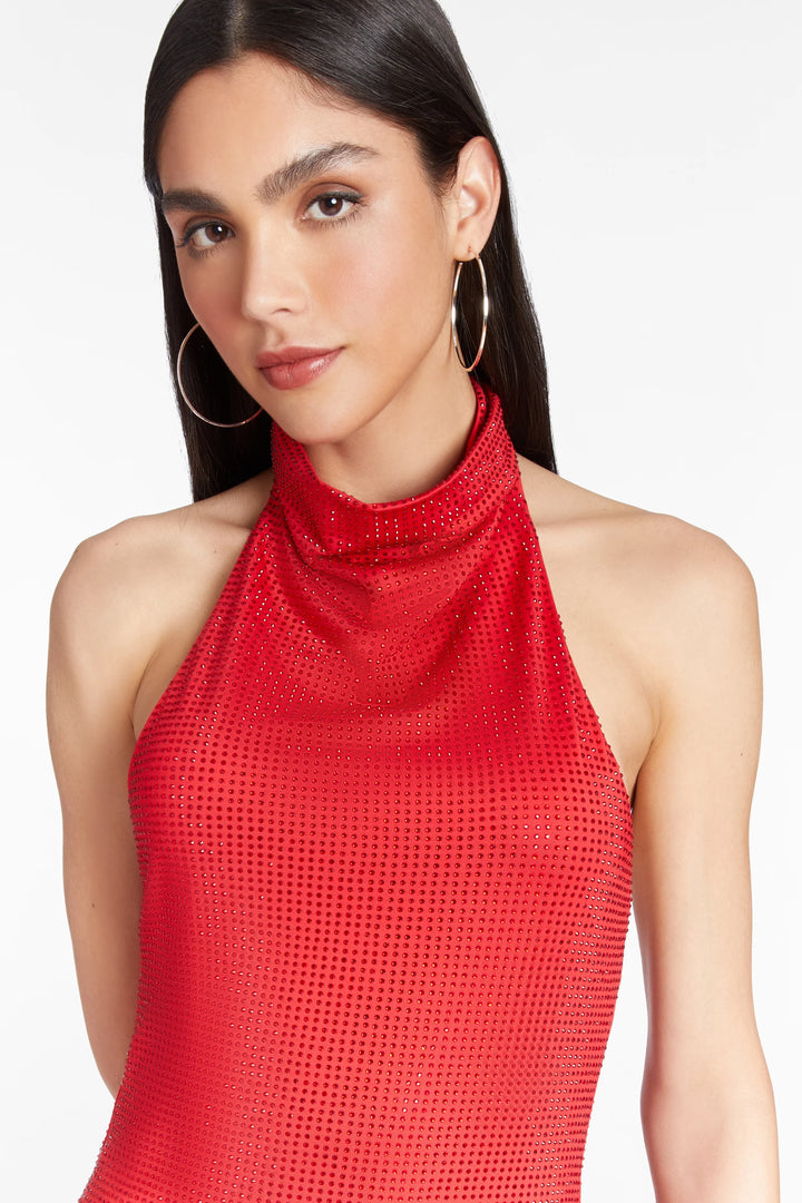 Amanda Uprichard rhinestone jersey halter Duffy dress.