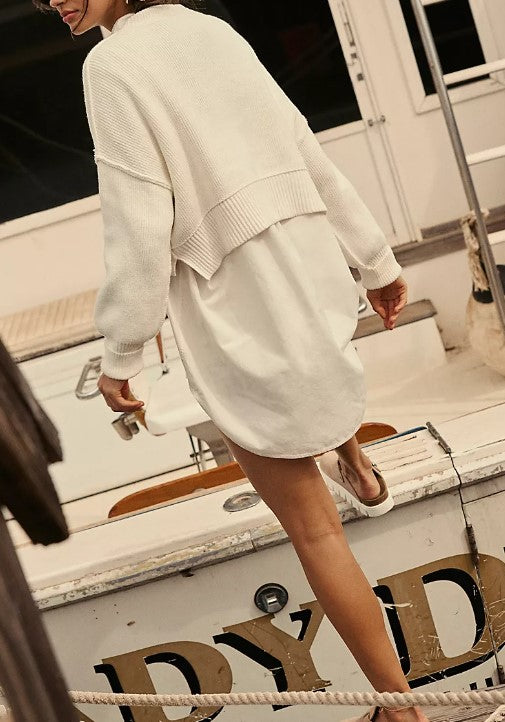 Features: Mock neckline, dropped shoulders, defined seaming, exaggerated hems