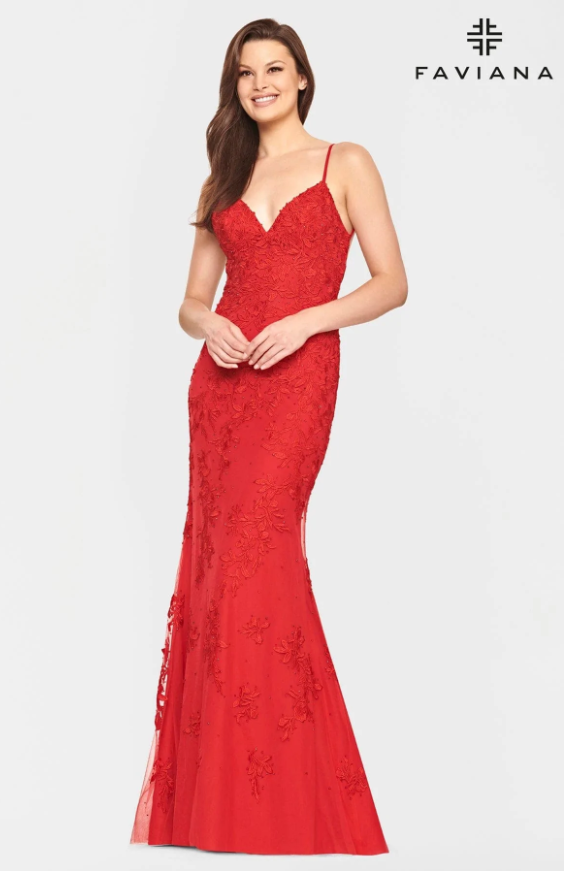 Long Lace Tulle V- Neck Dress With Lace -Up Straps For An Adjustable Fit, Fit And Flare Skirt, Invisible Zipper And Hook & Eye Closure