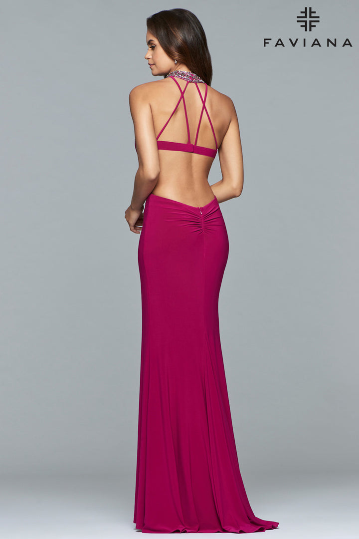 Faviana halter open back gown