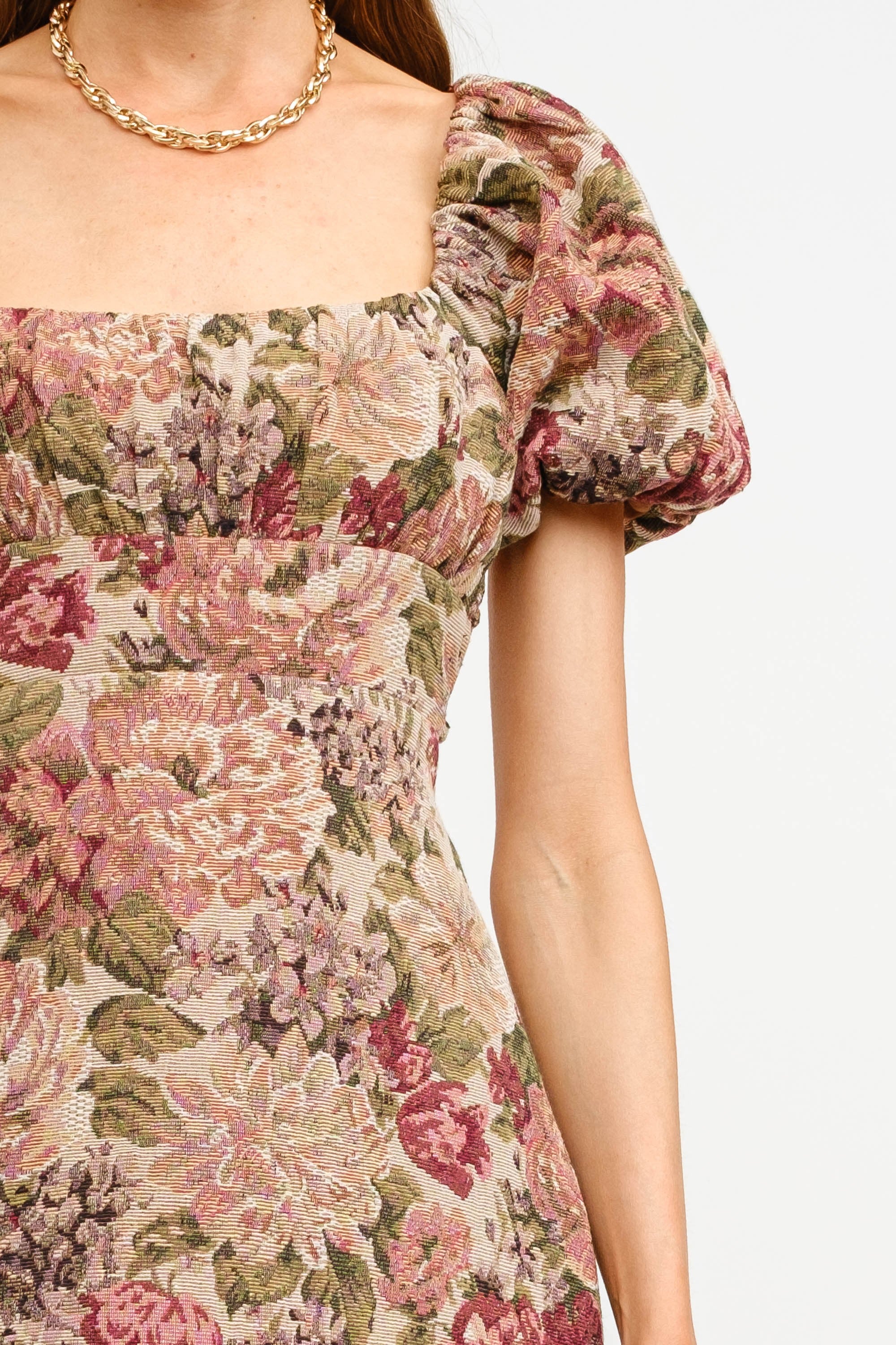 Floral Jacquard Puff Sleeve Dress