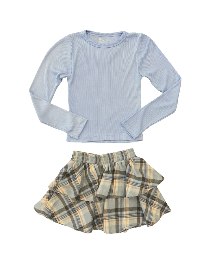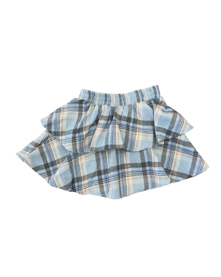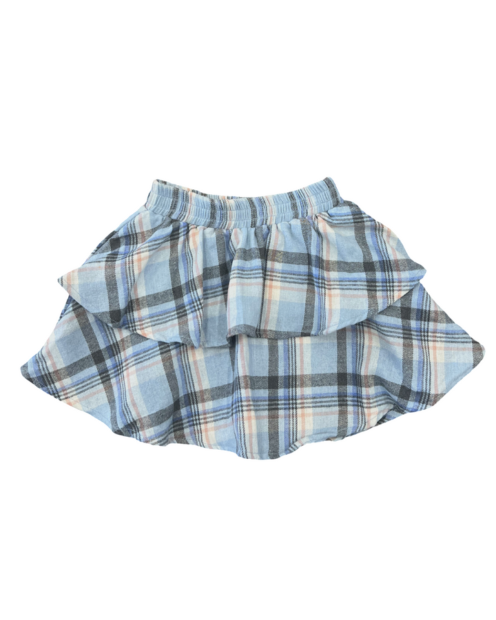 Girls Blue Plaid Flannel Ruffle Skirt