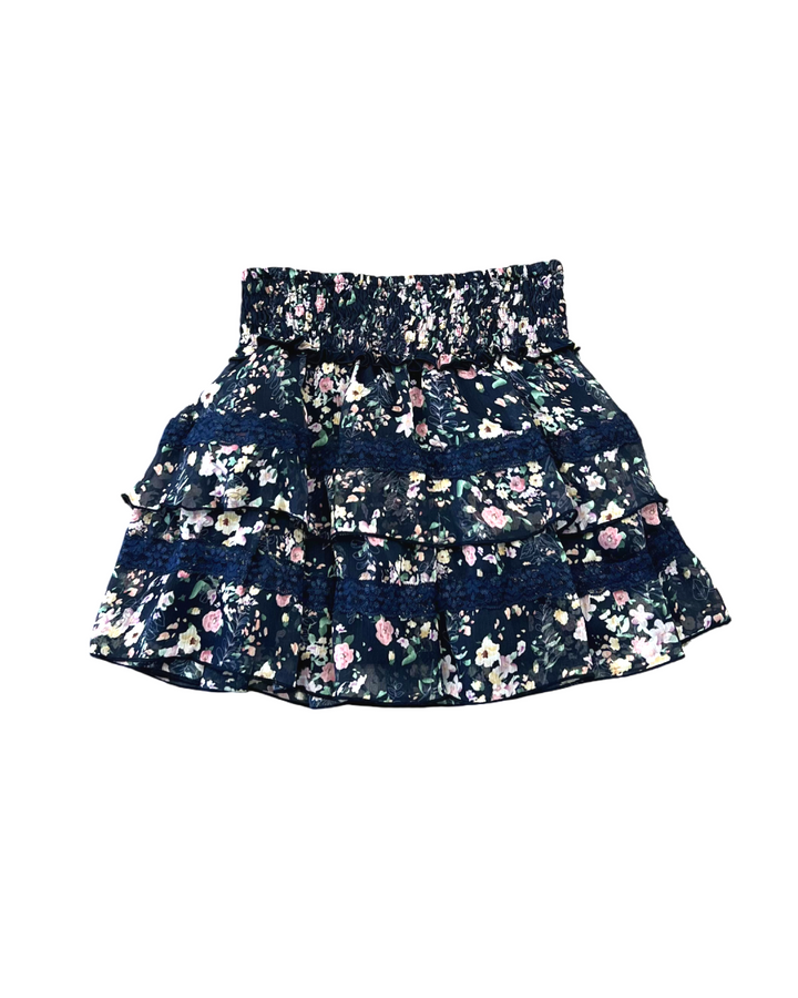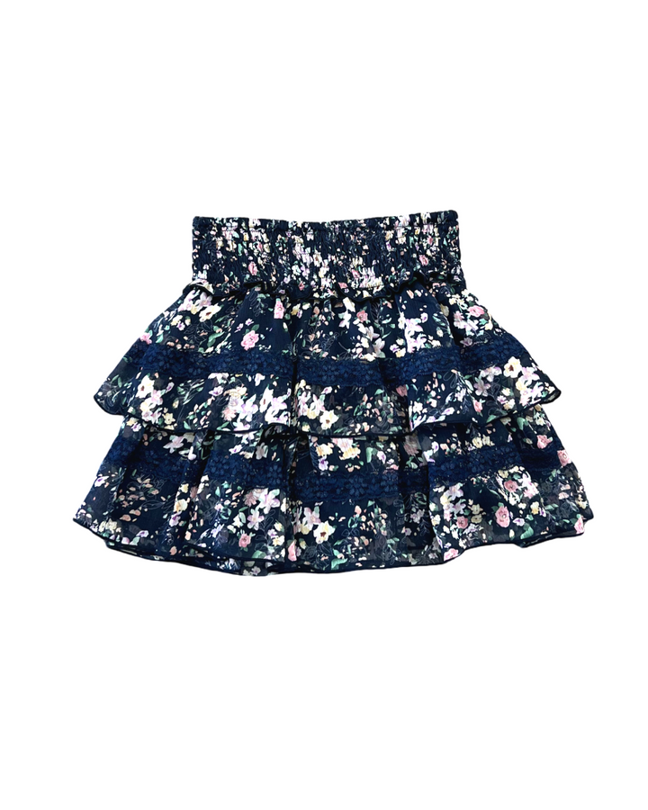 Delight your little one with this charming Girls Chiffon Ruffle Skirt featuring a graceful floral design in navy and pink. Crafted from lightweight chiffon, it offers a soft, airy feel perfect for all-day comfort. Delicate lace trim and layered ruffles add a touch of elegance, making it ideal for special occasions or everyday wear. This skirt combines style and comfort effortlessly, helping your child look and feel beautiful.