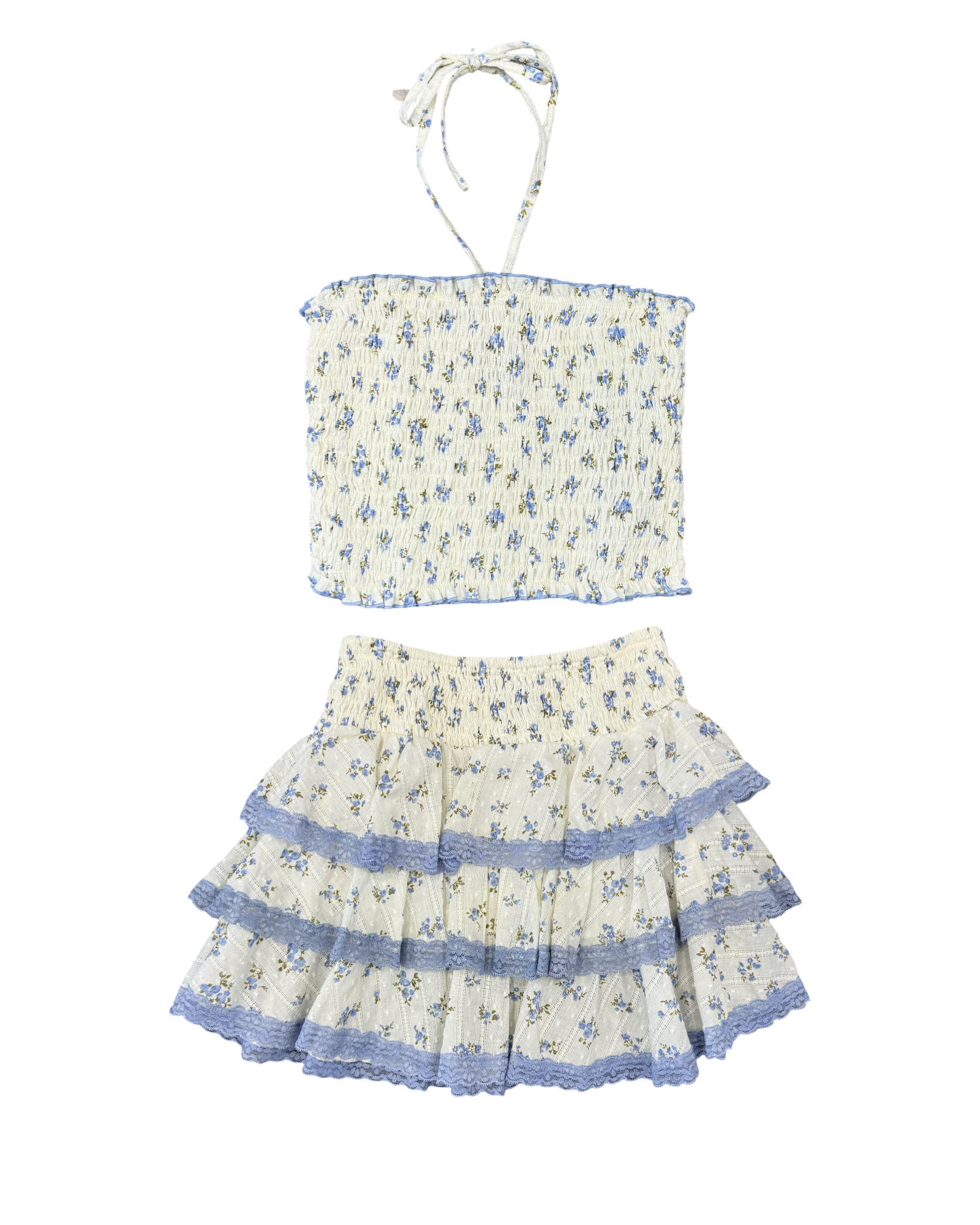 This charming floral top combines timeless style with modern comfort for your girl's wardrobe. The cream and blue palette features delicate floral detailing that's perfect for any season, while the smocked design adds texture and visual interest. The versatile halter and tube top silhouette offer flexible styling options—dress it up for special occasions or keep it casual for everyday wear. The quality construction ensures durability through countless wears and washes. A must-have piece that transitions beautifully from season to season.