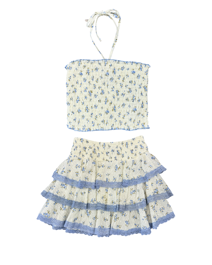 For the perfect look, pair it with the Girls Cream Blue Floral Ruffle Skirt!