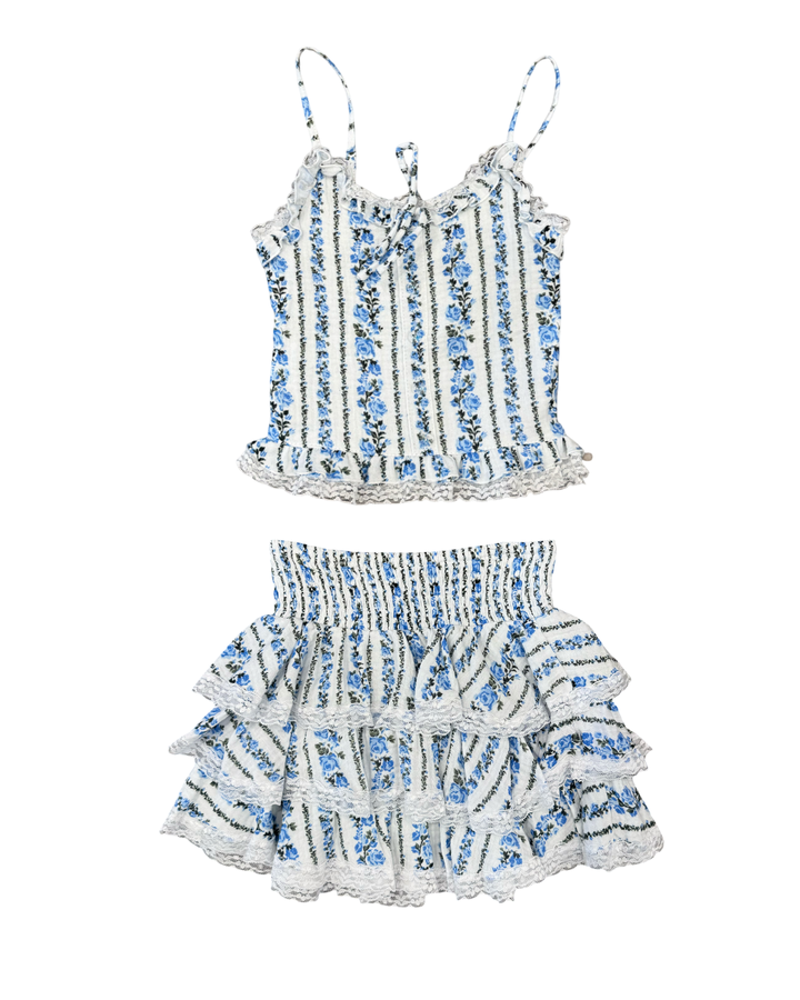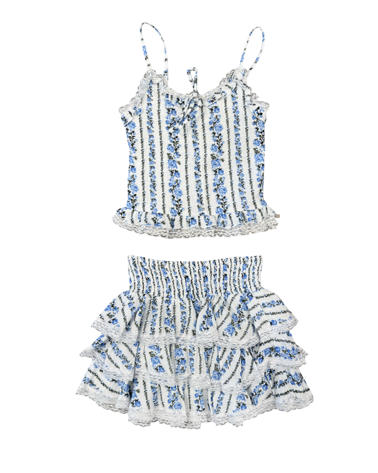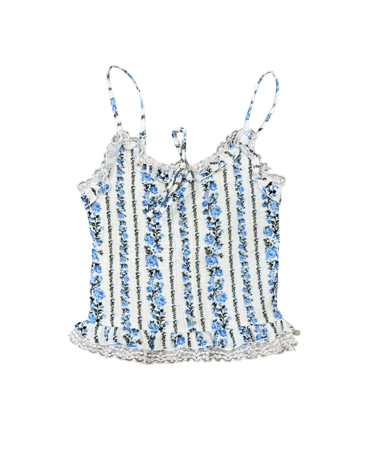 Introduce your daughter to effortless elegance with this charming floral cami from Flowers by Zoe. Featuring a delicate white and blue botanical print, this piece captures a demure, timeless aesthetic perfect for layering or wearing solo. The soft lace trim adds a touch of feminine sophistication, while the comfortable cami silhouette ensures all-day wearability. Ideal for creating polished, put-together looks that feel both age-appropriate and stylish.