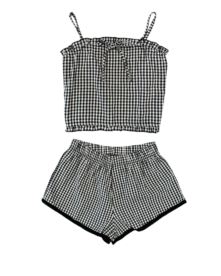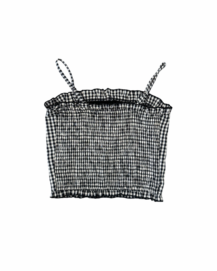 Elevate her wardrobe with this charming gingham cami from Flowers by Zoe. Featuring a classic white and black check pattern, a playful bow front detail, and delicate ruffled trim, this piece effortlessly blends timeless style with modern flair. Perfect for layering or wearing solo, it's the versatile essential every girl needs for creating cute, on-trend looks all season long.