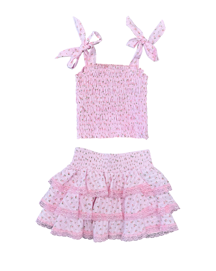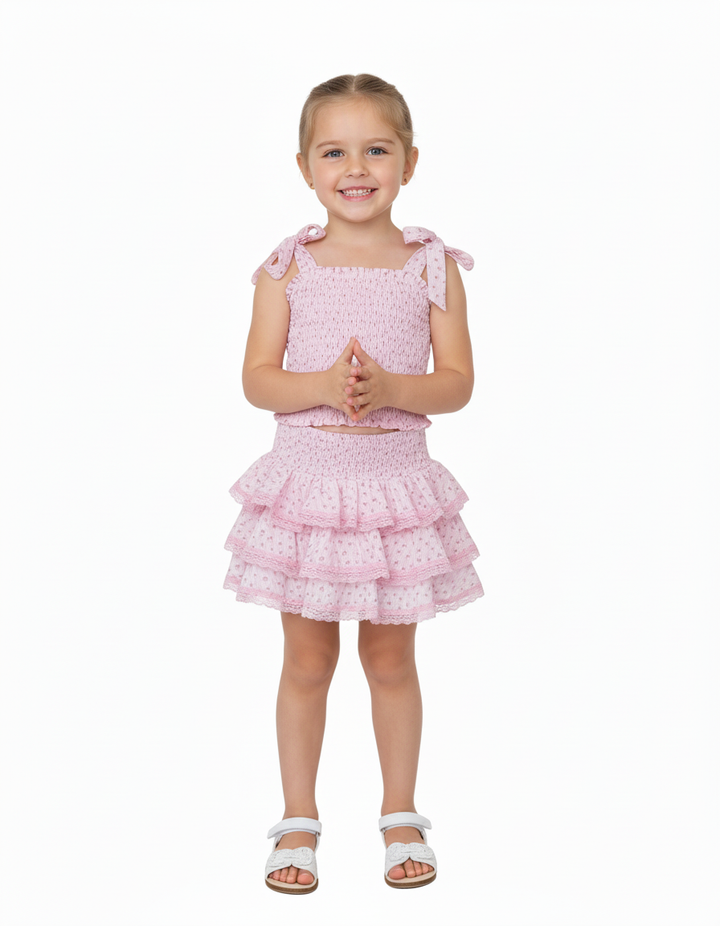 For the perfect look, pair it with the Girls Pink Rose Floral Smocked Top or the Girls Pink Rose Floral Tie Strap Top!