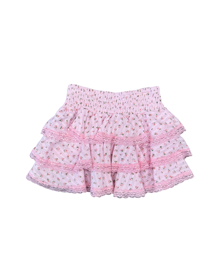 Girls Pink Rose Floral Ruffle Skirt