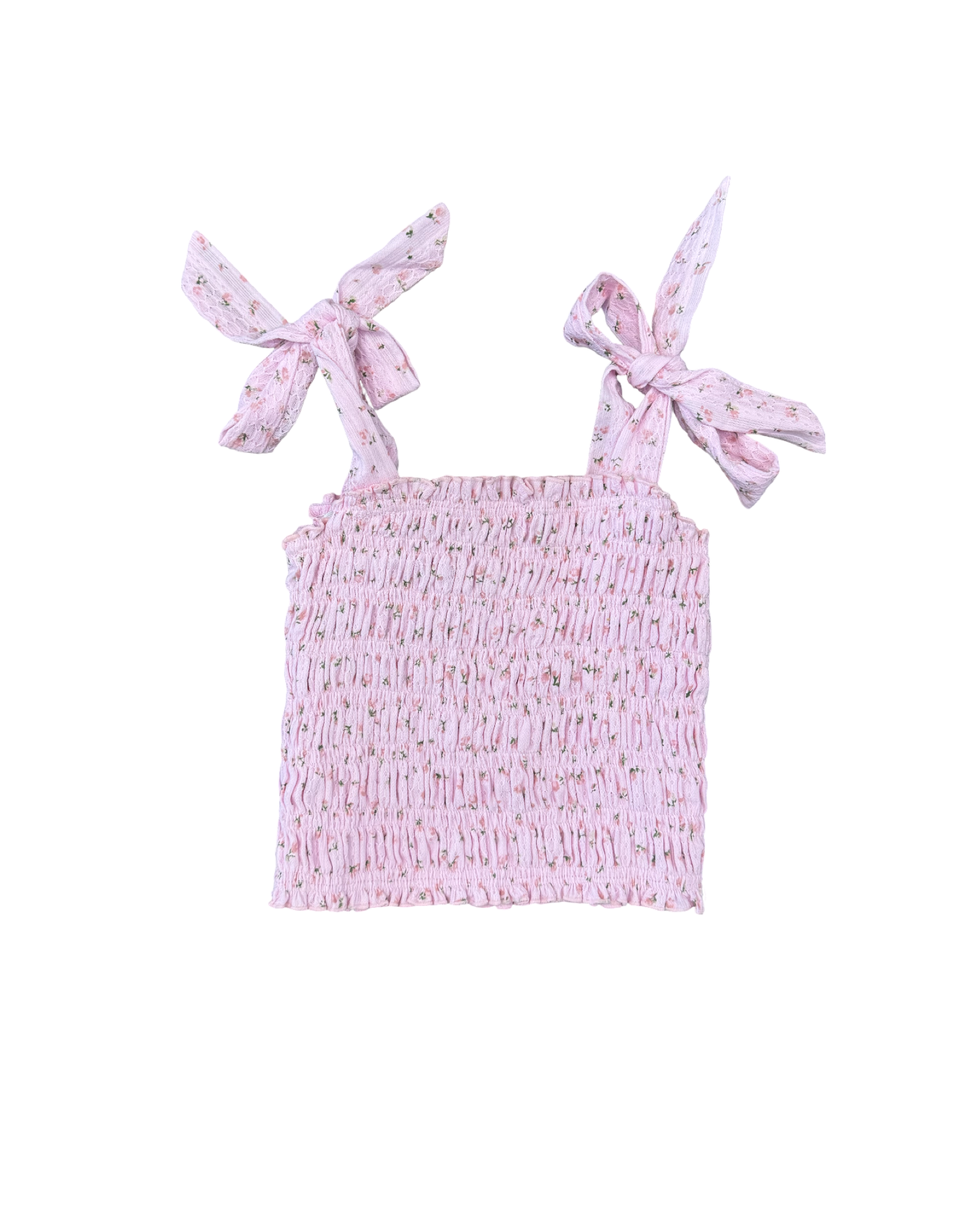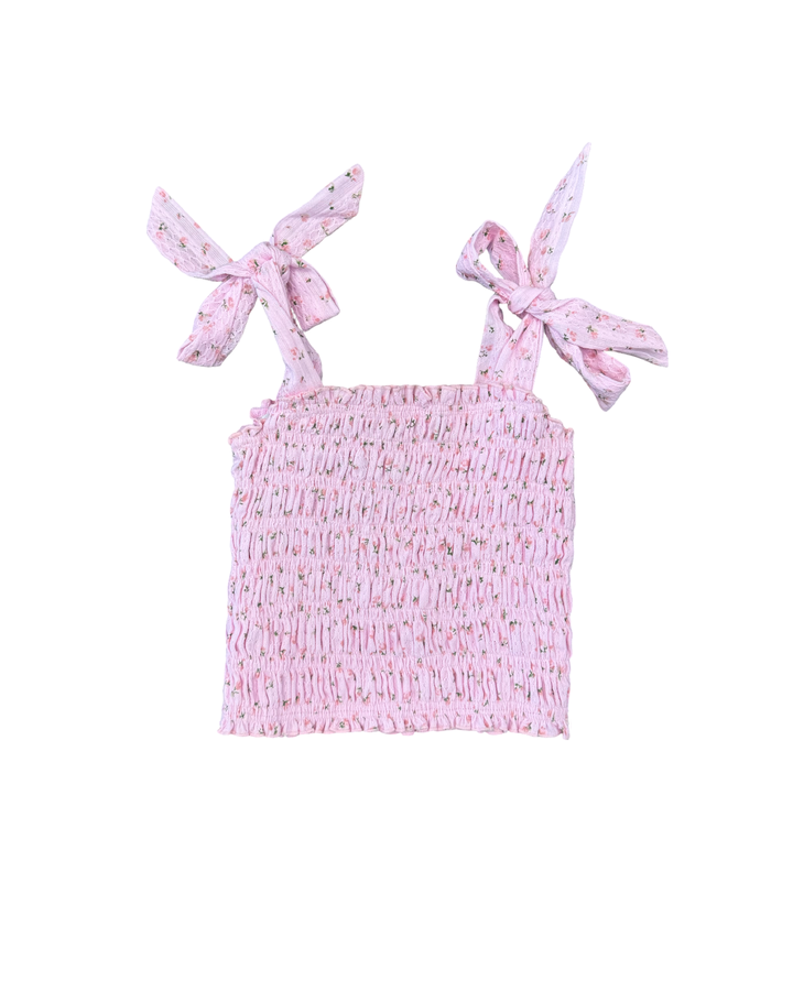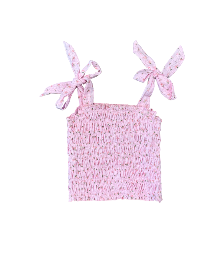 Introduce your daughter to effortless style with this charming pink rose floral top from Flowers by Zoe. Featuring a delicate rose print that captures springtime beauty, the adjustable tie straps offer a perfect fit as she grows, while the smocked detailing adds texture and visual interest. Soft, breathable fabric keeps her comfortable all day long, whether she's playing at the park or heading to school. A versatile piece that pairs beautifully with any bottoms in her wardrobe.