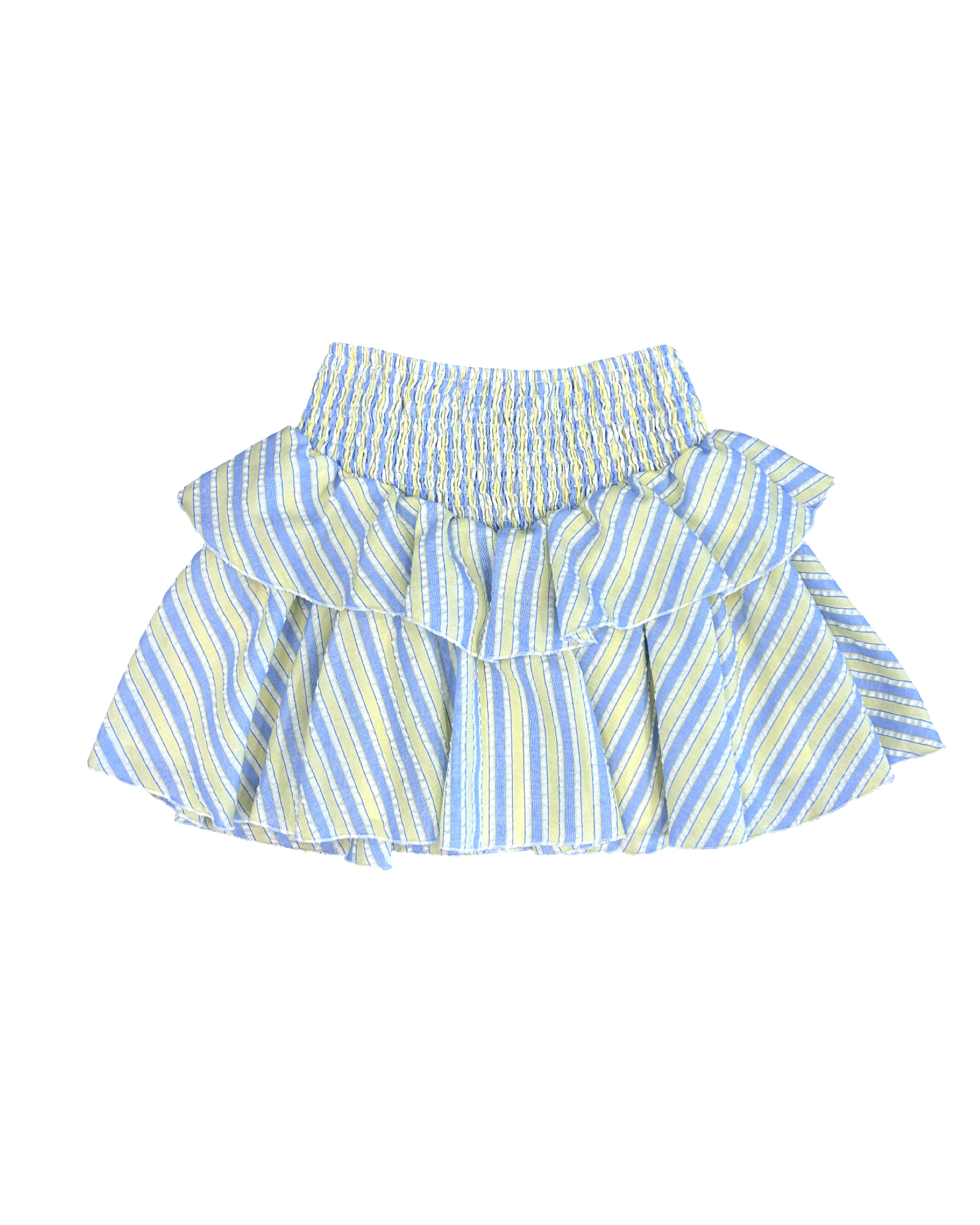 Let your girl twirl with confidence in this charming striped ruffle skirt from Flowers by Zoe. The cheerful yellow and blue stripes bring playful energy to any outfit, while the delicate ruffled hem adds a touch of whimsy and movement. Perfect for playdates, parties, or everyday adventures, this skirt combines comfort with style that kids love to wear. A versatile piece that pairs beautifully with solid tops and makes getting dressed fun.