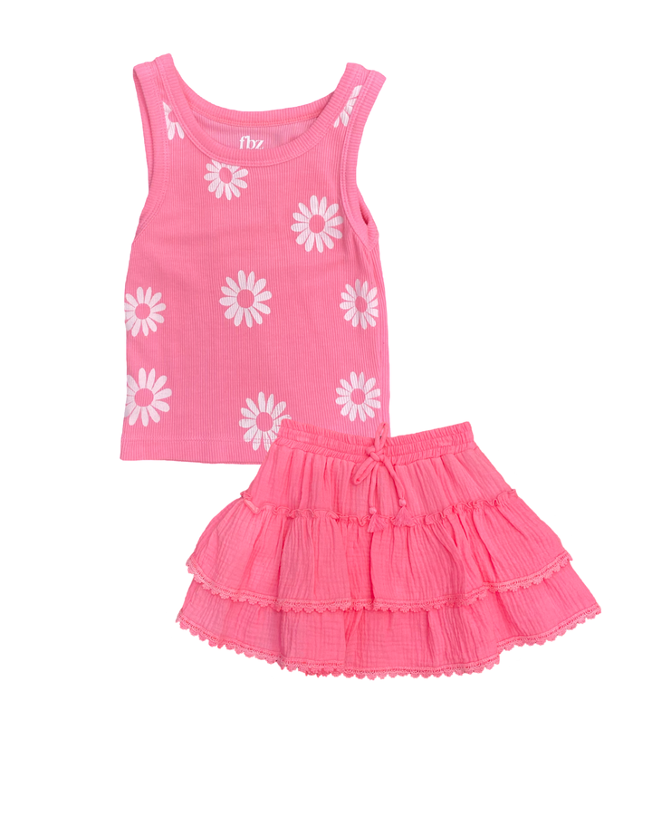Best paired with the Flowers by Zoe Neon Coral White Daisies Ribbed Tank!