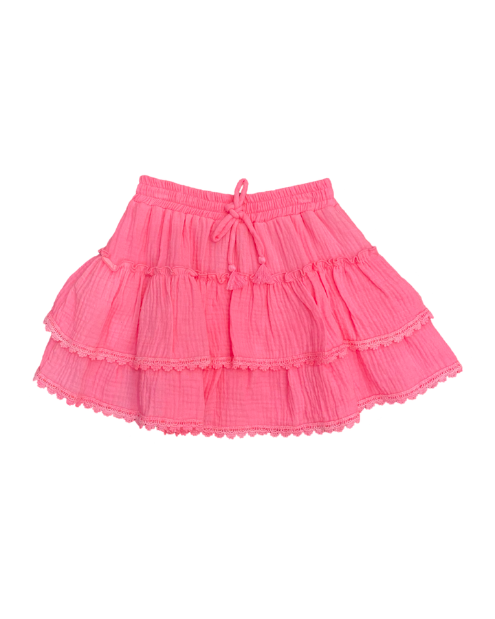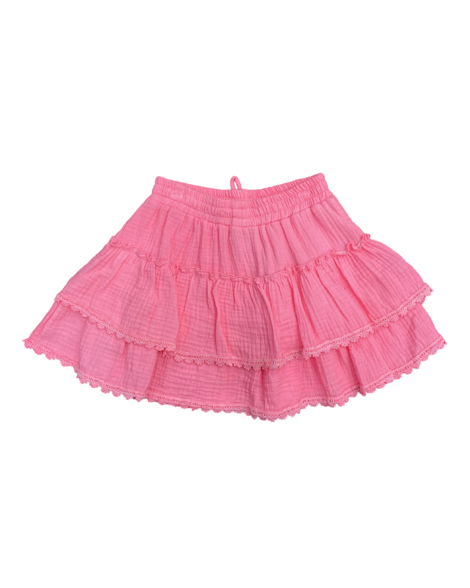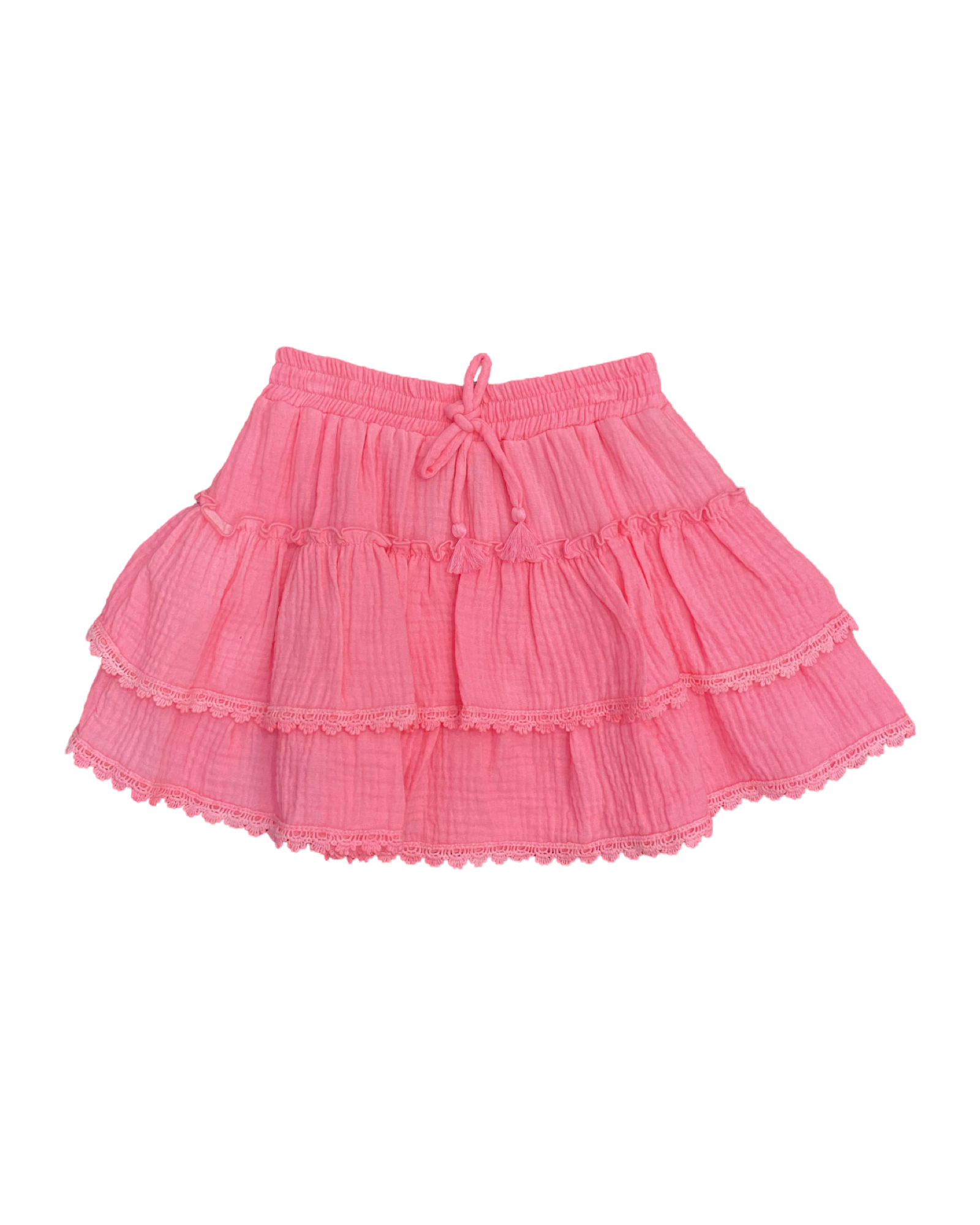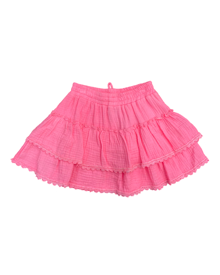 Girls Neon Coral Gauze with Trim Ruffle Skirt