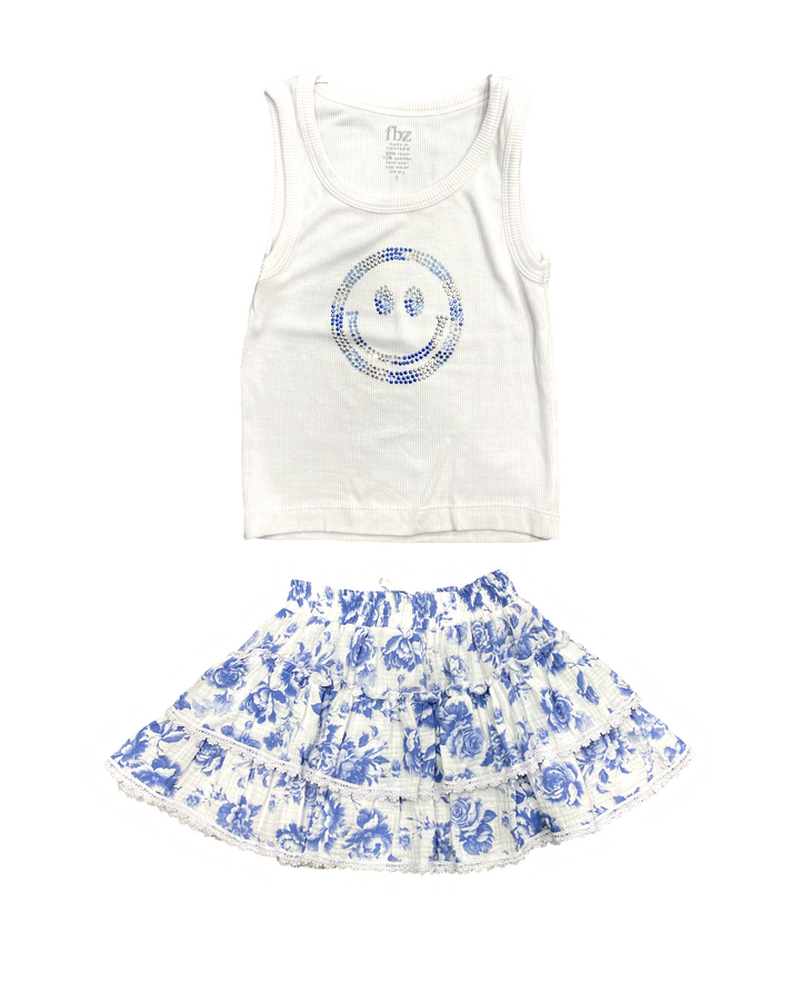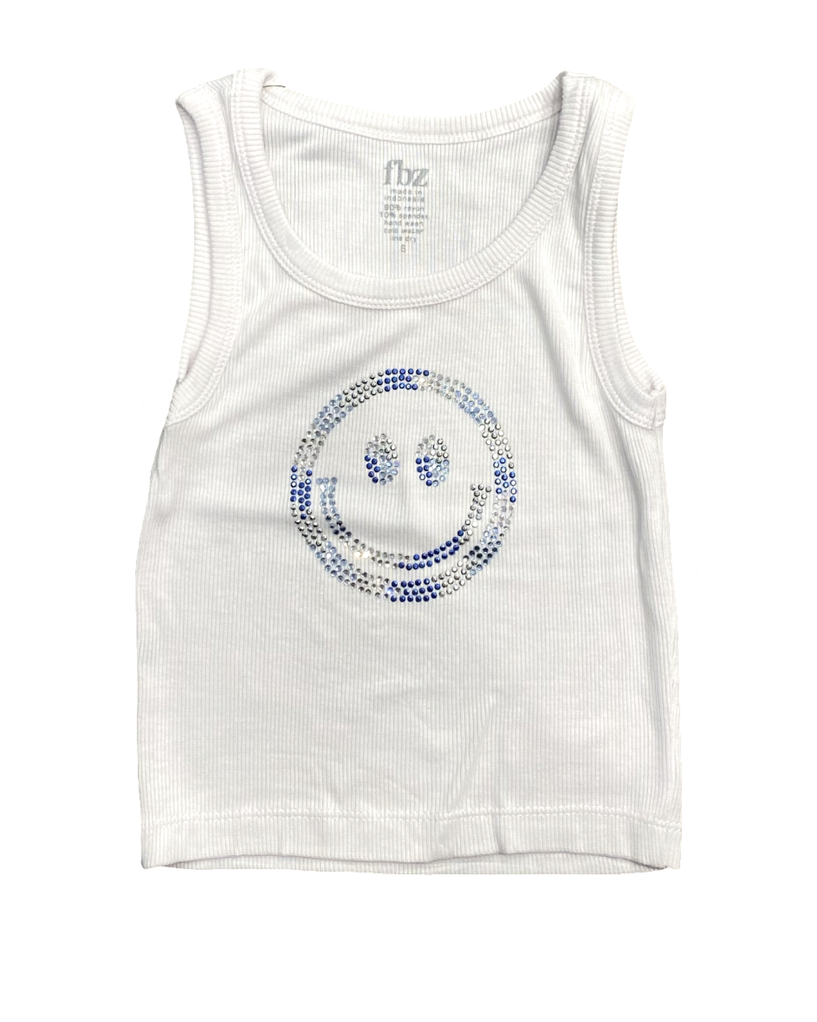 Girls White, Blue, & Silver Smiley Ribbed Tank