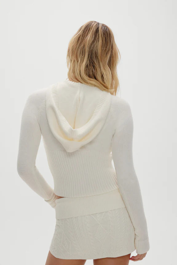 Designed in signature Cloud Knit fabric, this snug-fit silhouette features a mini v-neckline and ribbed sculpting at the neck, body, hood, and sleeve openings. Already a bestseller, Hazel is the hoodie you’ll reach for again and again. Pair it with the Briar Knit Mini Skort for a cute and trendy look!
