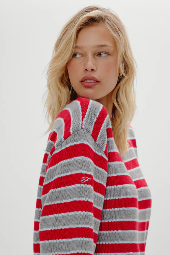 The Sloane oversized knit sweater leans into a true oversized fit that feels borrowed from your boyfriend’s closet. A special embroidered F logo nods to its signature touch.