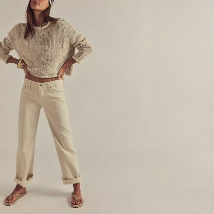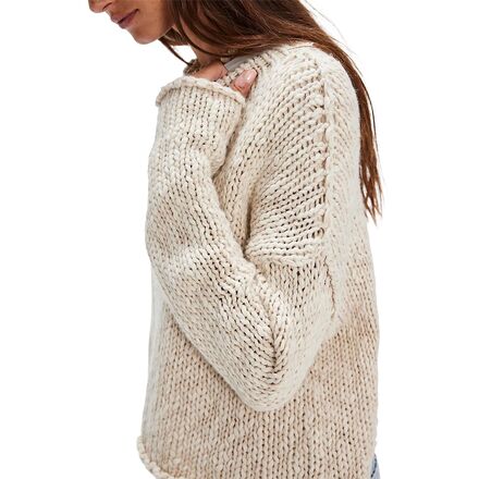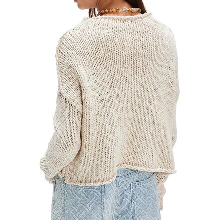 So light and perfect for any-season layering, this staple sweater is featured in an airy cotton knit with a rolled neckline and dropped shoulders for that laidback look.