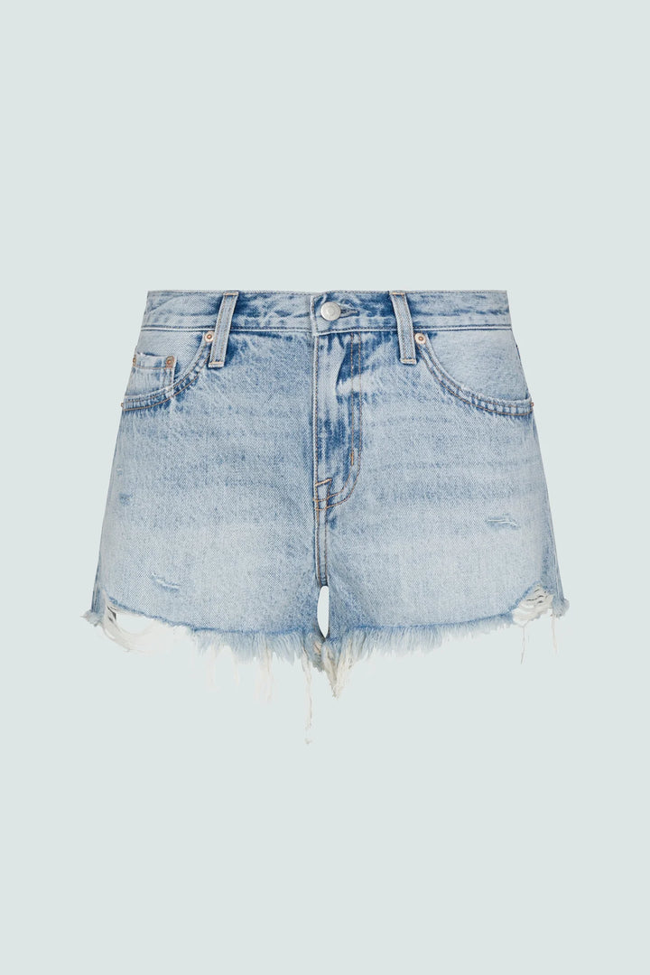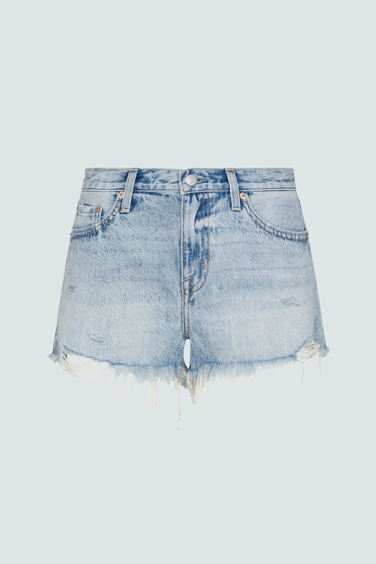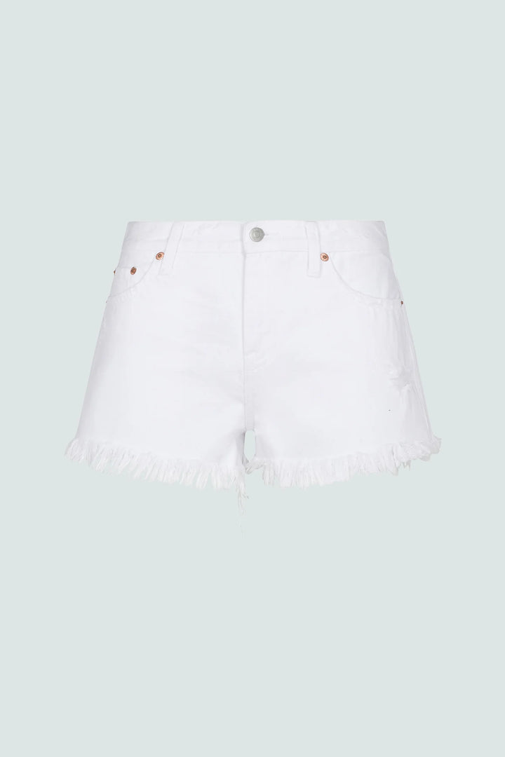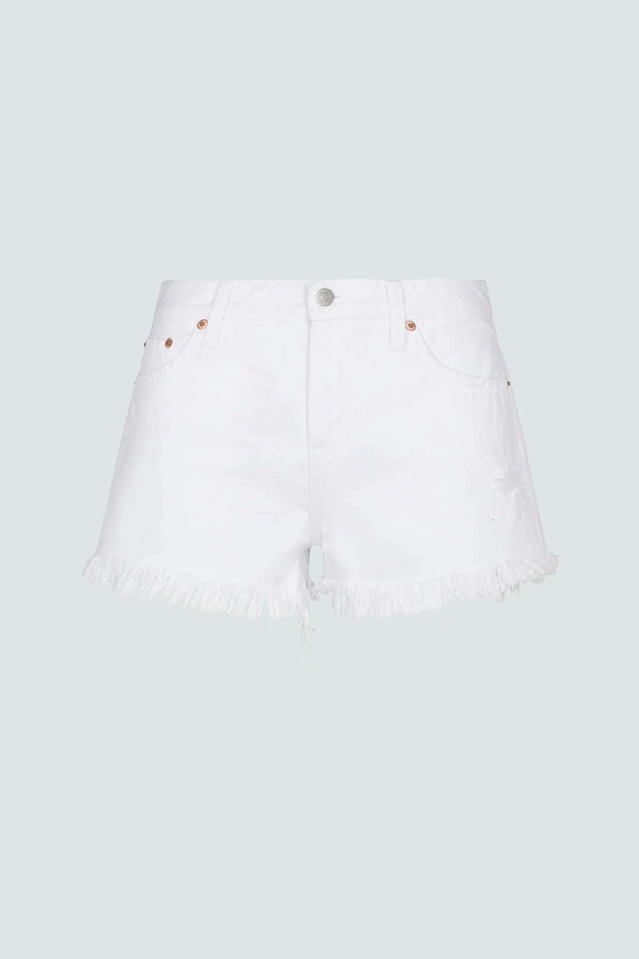 The ideal short for showing some leg. The Gigi is a low rise style that hangs right at your hip and features a frayed cut off hemline that ends at your upper thigh for great tanning opportunities. White Vintage is a colored denim white wash with contrast hardware and vintage inspired distressing and fading, and Vivid Distressed is a super light wash with dark dimension near the buttons, which gives a lovingly worn in look.