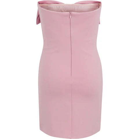 The Teddie mini dress features a cute bow detail and flattering stretch/structured fabric that hugs your curves. Perfect for ant occasion, it combines comfort with a chic tailored fit. This dress runs small. This item runs small. We recommend sizing up one dress size.