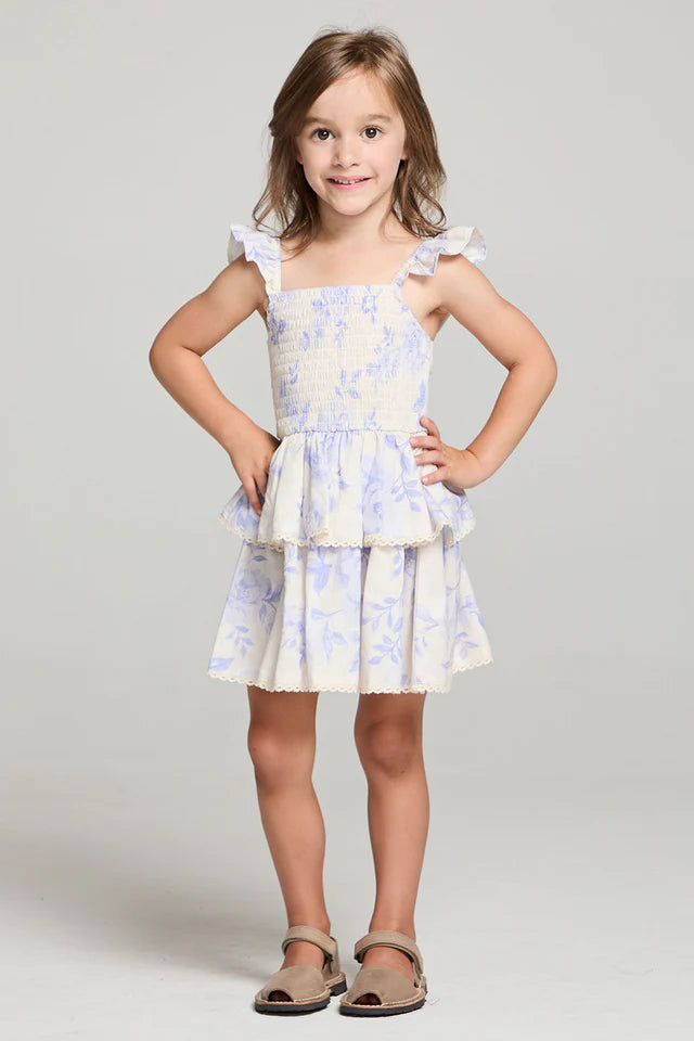 The ruched bodice and fluttering shoulder straps complete the charm.