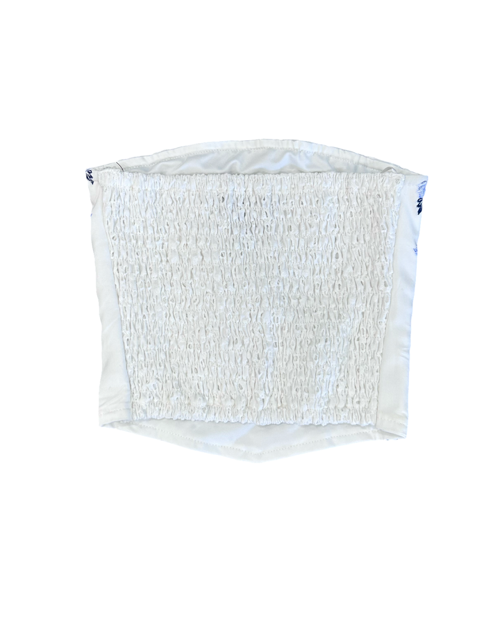 This adorable white eyelet strapless top is a summer essential for any girl's wardrobe! The crisp eyelet fabric feels light and breezy, while blue floral details add just the right amount of personality. Perfect for pairing with shorts, skirts, or jeans, this versatile piece works for everything from casual playdates to special celebrations. Easy to style and even easier to love!