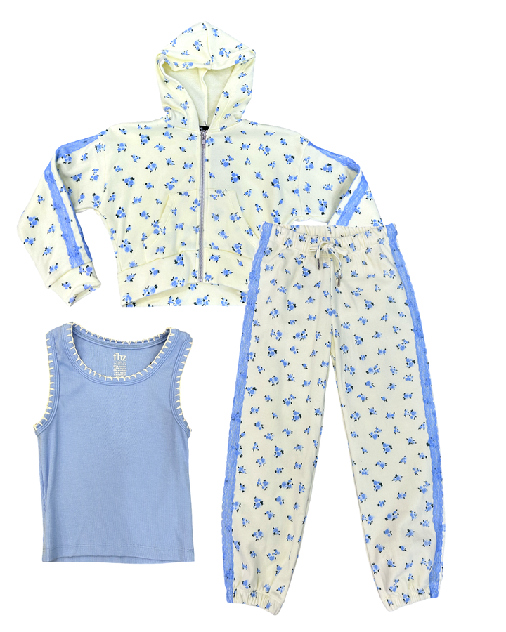Paired with the matching Yellow and Blue Floral zip hoodie