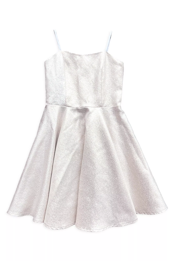 Un Deux Trois shimmer party dress with adjustable satin straps.