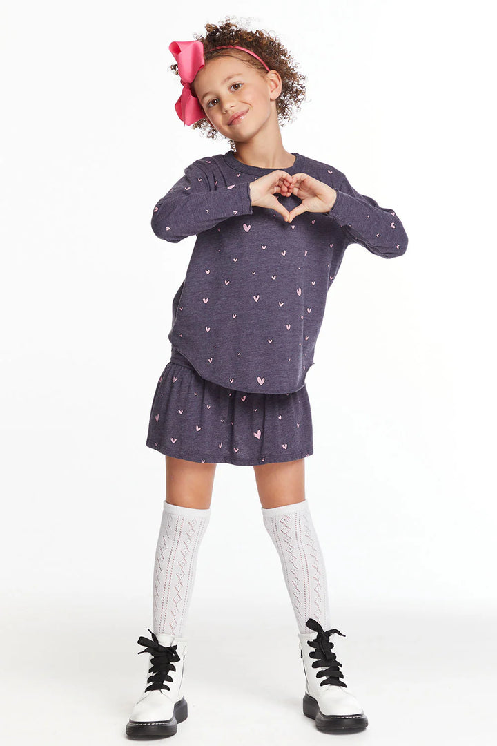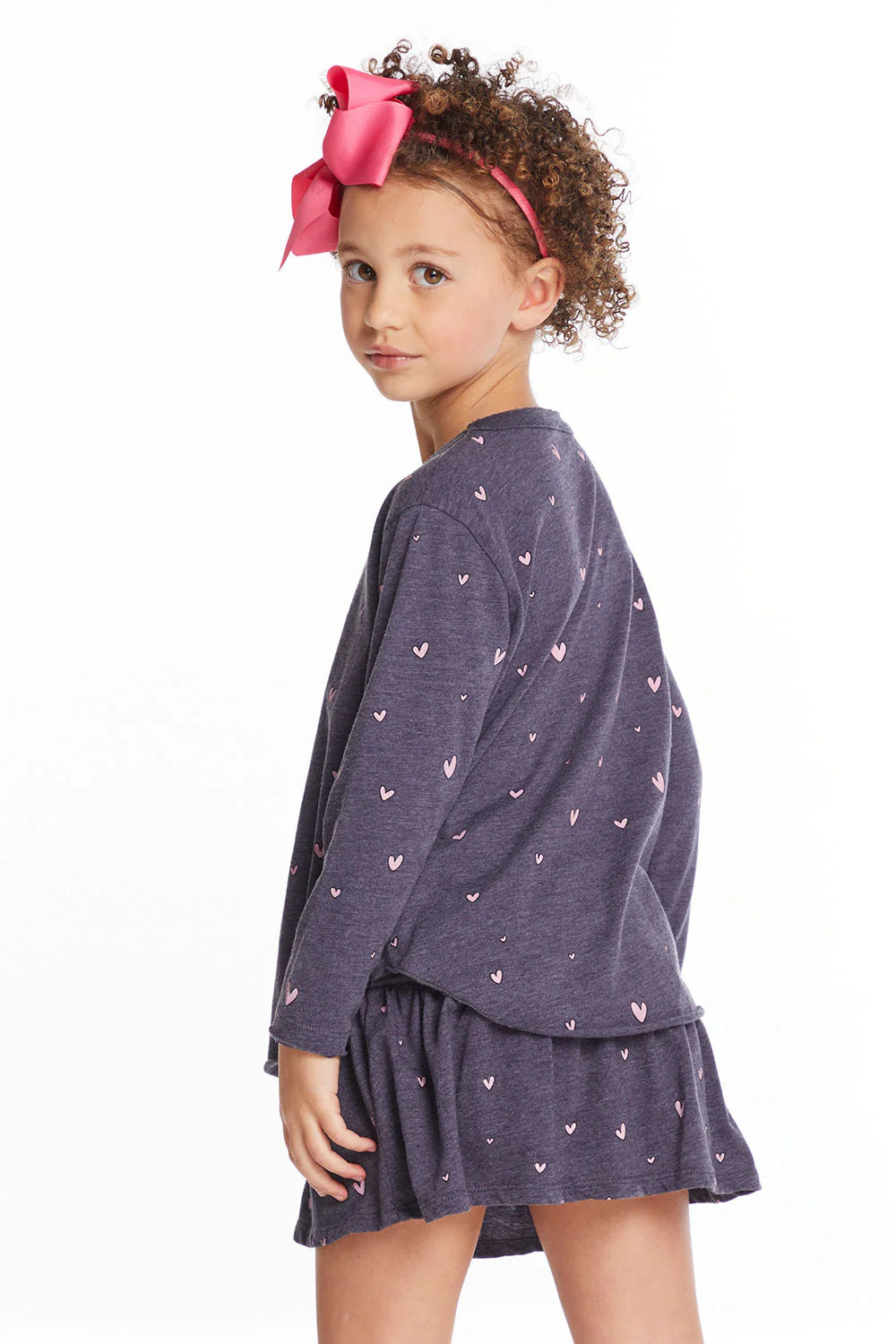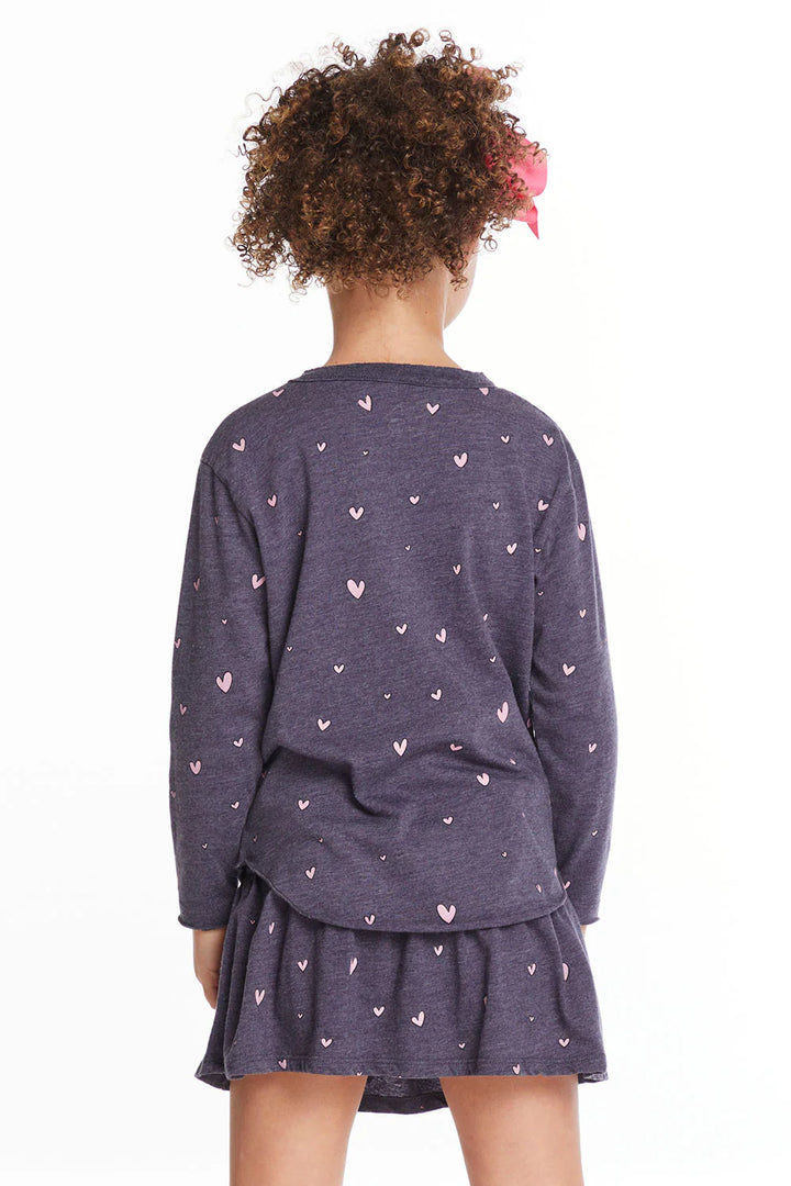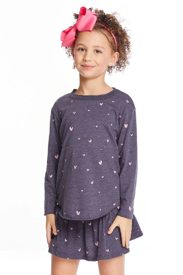 A petite design of soft pink hearts pops against the dark avalon navy fabric of this fetching tee. With long sleeves and a roomy, comfortable fit, it’s a look they won’t want to take off.