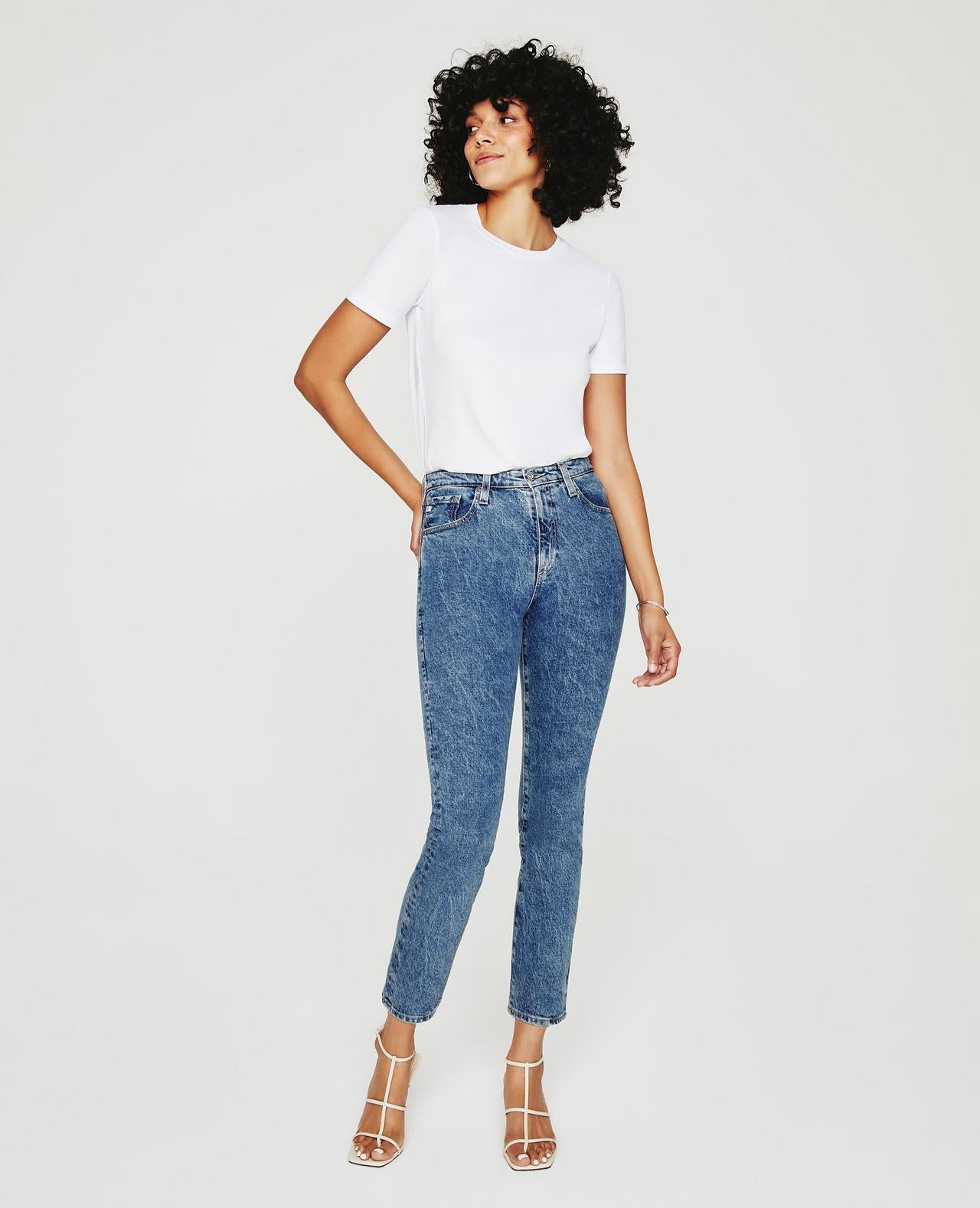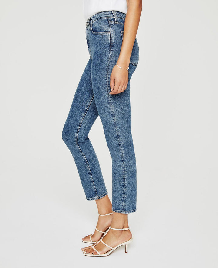 Isabelle is a high-rise straight crop designed in 11.5 oz. 360° Denim for full range of motion from day to night. Isabelle features a medium-light wash with sulfur undertones for lived-in appeal, accentuating the broken-in look of the faded indigo wash.