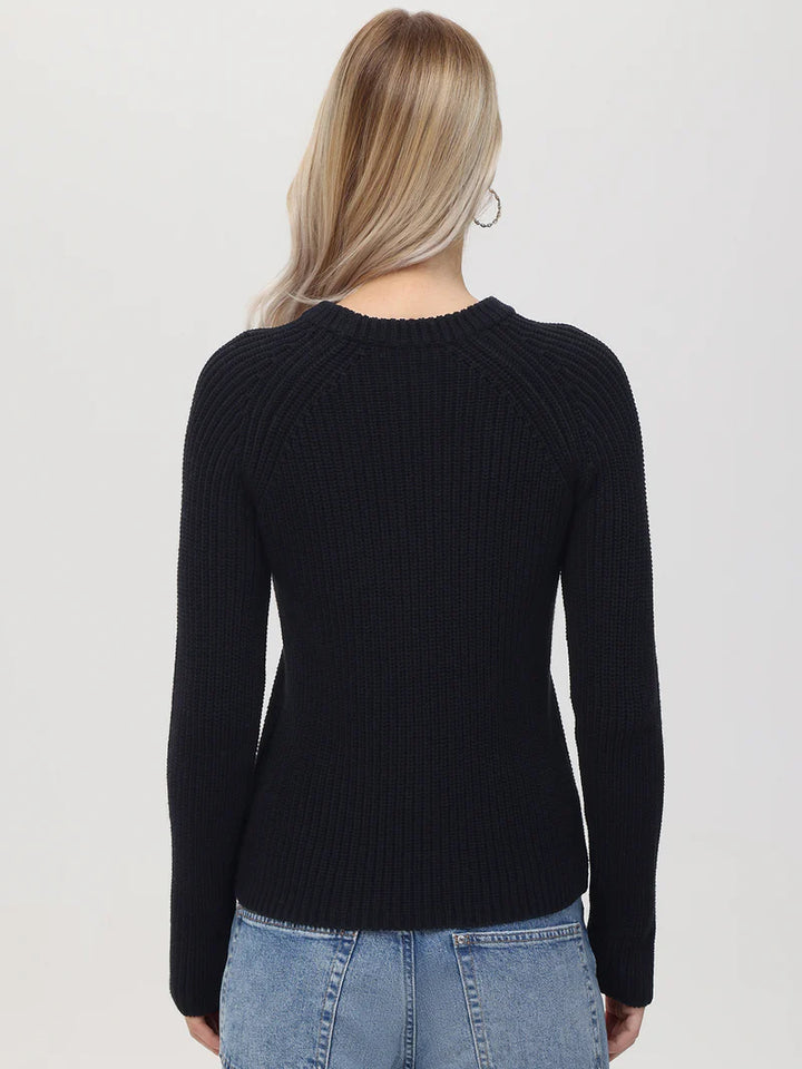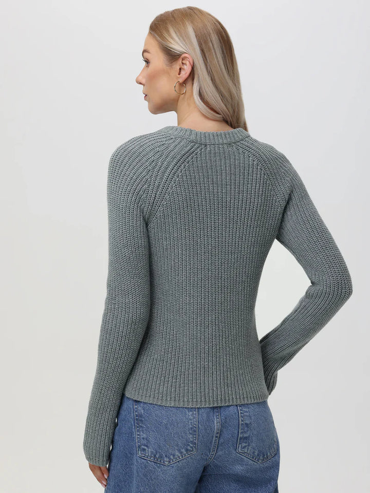 525 America's new take on the classic cotton shaker stitch sweater, offering a shorter, more fitted silhouette featuring a sporty raglan sleeve. Perfect sweater to wear year round.