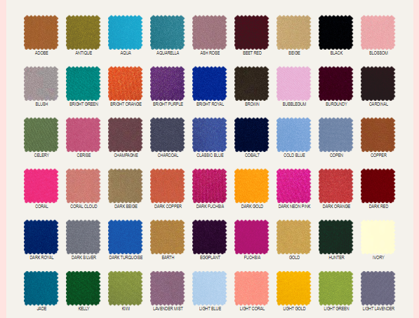 Colors available to order: 65+ colors (see swatch photo for reference).