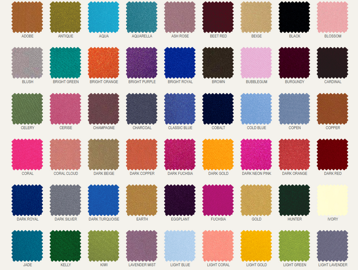 Colors available to order: 50+ colors (see swatch photo for reference)