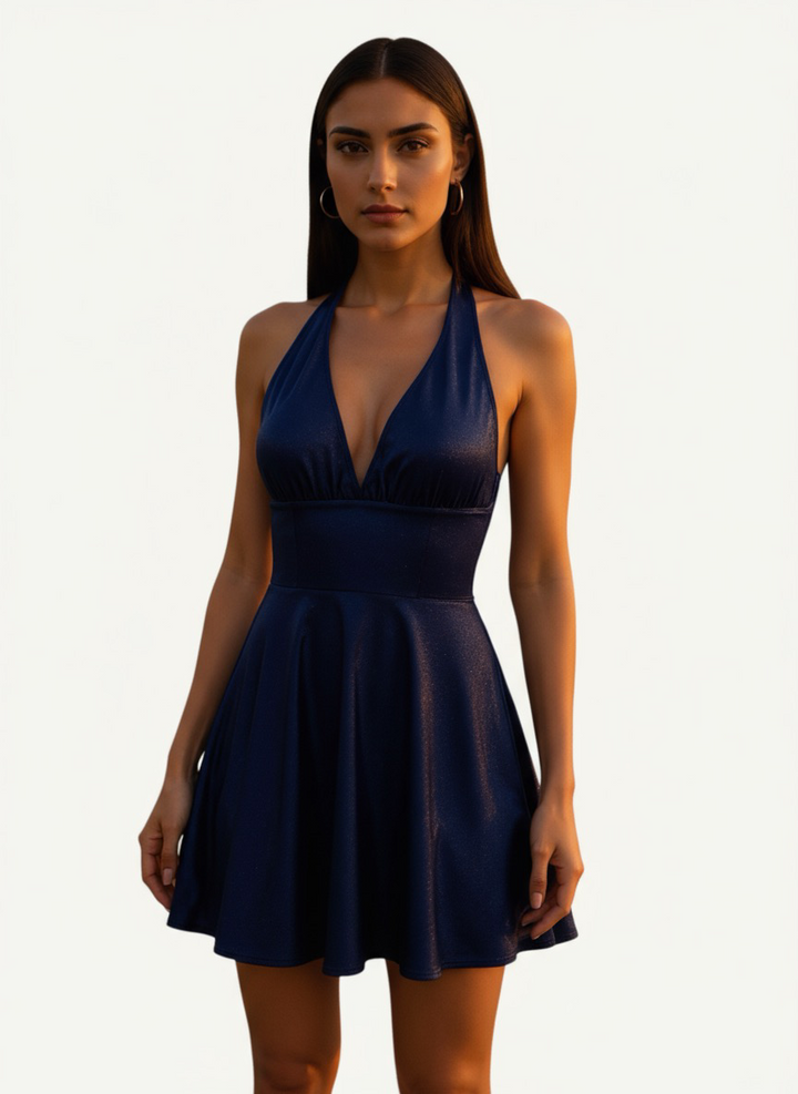 Jessica Angel's new DS line for homecoming includes this halter dress with a flouncy skirt and an extra long tie to make the perfect bow adornment. This dress would make the perfect homecoming dress or cocktail party dress!