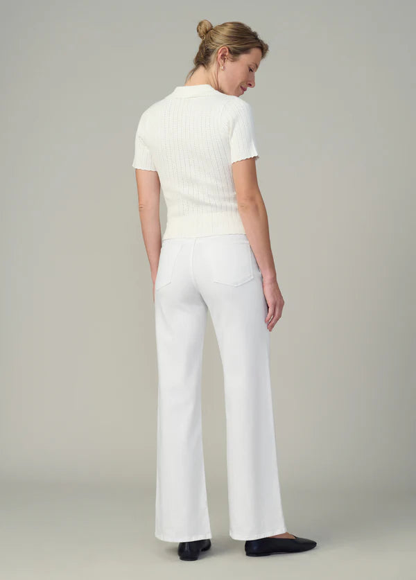 A high rise and slim fit through the waist and hip with a full-length wide leg, perfectly proportioned for 5'4" and under.