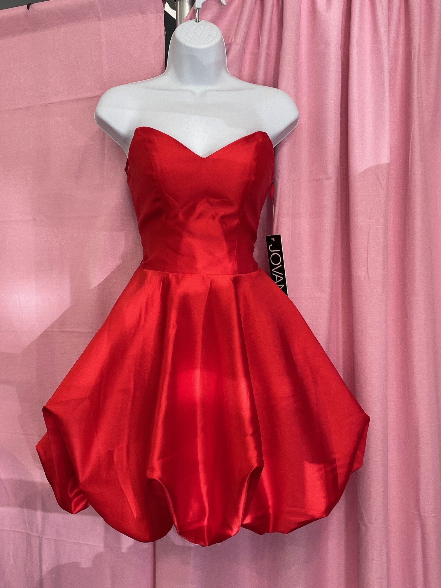 Strapless taffeta bubble skirt party dress. Lace up back.